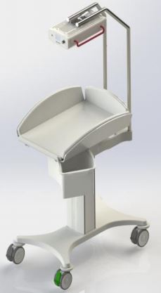 Stół do badań i leczenia dla utrzymania ciała temperatura niemowląt do 8 kg masy ciała i max. 70 cm wysokości ciała.