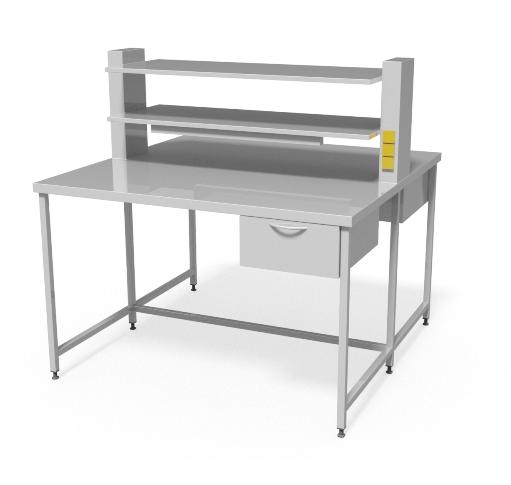 W standardzie stanowisk do pakietowania zastosowano blat roboczy z nastawką z półkami, szuflady na prowadnicach rolkowych z rączką w kształcie litery C, oświetlenie blatu pod dolną półką, gniazda elektryczne 6A/240 V