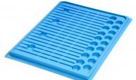 Cechą charakterystyczną tac dystrybucyjnych jest specyficzna struktura plastra miodu, która daje doskonałe mocowanie pojemników MediDispenser, uchwytów na etykiety, podręcznych akcesoriów a także kieliszków tak aby żaden element nie wysuną się niezależnie od tempa przemieszczania lub kąta nachylenia tacy względem podłoża. Taca dystrybucyjna z akcesoriami pozwala na efektywne i szybkie przygotowanie leków do podania i równie sprawną ich dystrybucje wśród pacjentów. Specyfikacja tacy: wymiary 340x450 mm, 19 rowków na pojemniki, do wszystkich pojemników MediDispensers, pojemność 23 kieliszków.