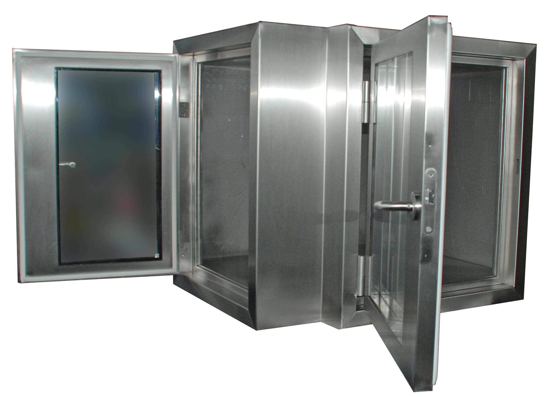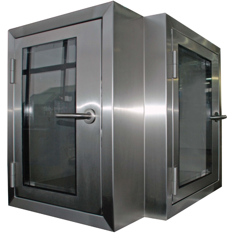 - zamontowane w ścianach działowych pomiędzy pomieszczeniami, które mają różną klasę czystości lub występuje pomiędzy nimi różnica ciśnień; możliwia ona bezpieczne i szybkie przekazanie materiału, narzędzi bądź próbek, minimalizując ryzyko zanieczyszczenia oraz ograniczając czas ich transportu (brak konieczności przebierania się personelu przemieszczającego się pomiędzy strefami o różnej klasie czystości),