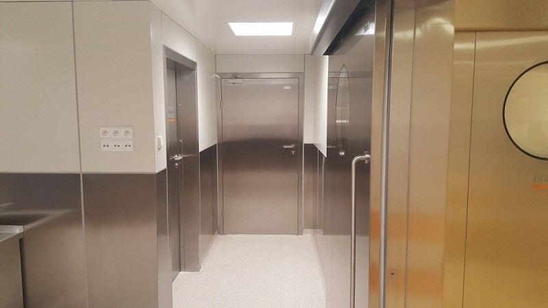 - stal kwasoodporna (drzwi z atestem uwzględniającym zastosowanie drzwi do sal operacyjnych),