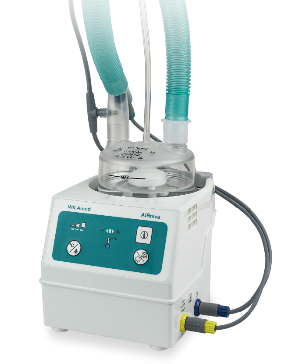 Urządzenie AIRniva zapewnia optymalnie ogrzany i nawilżony gaz, wspierając podatność pacjenta na leczenie metodą NIV w łatwy i bezpieczny sposób, ostatecznie zwiększając komfort pacjenta.