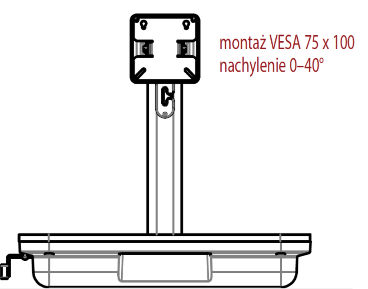 Wózek ma wysięgnik z mocowaniem VESA umożliwiające zamontowanie: komputera All In One o przekątnych od 15” do 24” lub monitora dotykowego do komputera typu BOX o przekątnych od 15” do 32”. Monitory, w tym dotykowe dostępne są w ofercie MonitorMed. Monitory LG – przeglądowy 27” lub 32” diagnostyczny również pochodzą z naszej oferty. Wózek ma również możliwość wyposażenia w uchwyt podwójny VESA do pary monitorów diagnostycznych 21,3” pionowych.