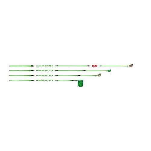 (Rys. 3). W przypadku kija teleskopowego o długości od 3,85 do 6 m zmiana długości następuje przez podniesienie mechanizmu zaciskowego (Rys. 2). Wygodny w użyciu mechanizm sprężynowy. Kije teleskopowe dostosowane do użycia z czerpakami i siatkami, które posiadają uniwersalną część łączącą.