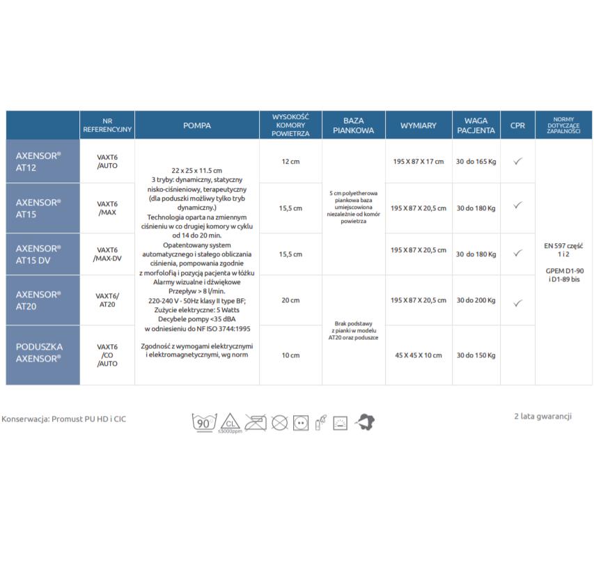 Axtair Automorpho Axensor, wyposażony jest w opatentowany układ pompowania określający stopień napompowania w zależności od budowy anatomicznej pacjenta.