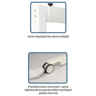- Dopasowanie odpowiedniej wysokości urządzenia zajmuje tylko kilka sekund zapewniając natychmiastową gotowość do użycia. Teleskopowo rozsuwane prowadnice dają gwarancję i możliwość zastosowania urządzenia do większości pomieszczeń i zapewniają rozwiązanie problemów związanych z podnoszeniem i przemieszczaniem w każdej sytuacji.
