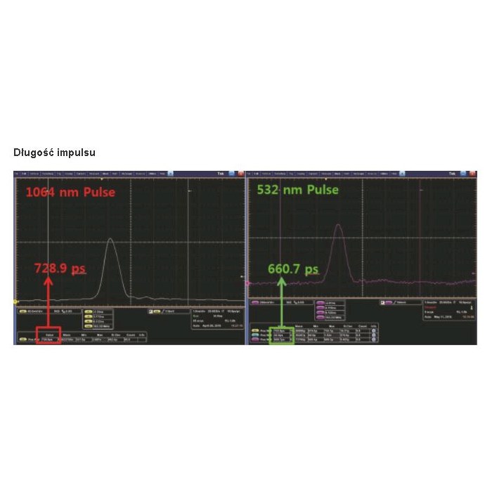 | Długości fali: | 1064nm, 532nm, 595nm, 660nm |