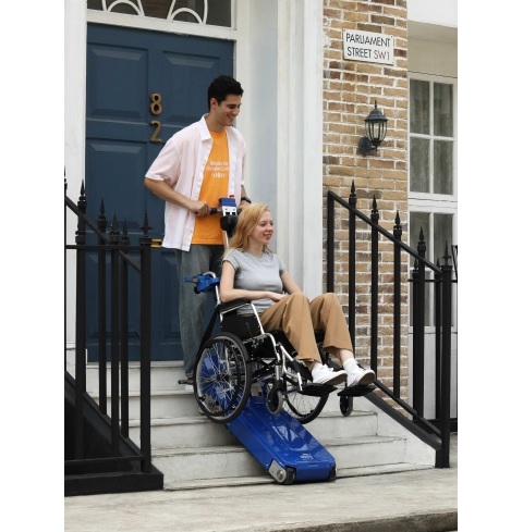 - Elektryczny schodołaz do transportu wózków inwalidzkich po schodach, jest składany i lekki, dzięki czemu jest łatwy do przechowywania oraz do transportu samochodem. Antypoślizgowe gąsienice są stabilne, dzięki czemu transport po schodach jest niezwykle bezpieczny.