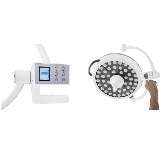 - uchwyty boczne ulokowane na obwodzie czaszy oraz przy panelu sterowania umożliwiają precyzyjne ustawienie lampy w wymaganej pozycji,