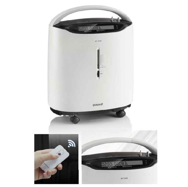 Koncentrator tlenu Yuwell 8F-5AW charakteryzuje nowoczesny wygląd, niewielkie wymiary, niska waga oraz cicha praca. Urządzenie można sterować za pomocą pilota oraz posiada wbudowany wyświetlacz LCD z inteligentnym systemem nadzoru (alarm usterek, alram zmiany filtrów, monitorowanie stężenia tlenu w czasie rzeczywistym).