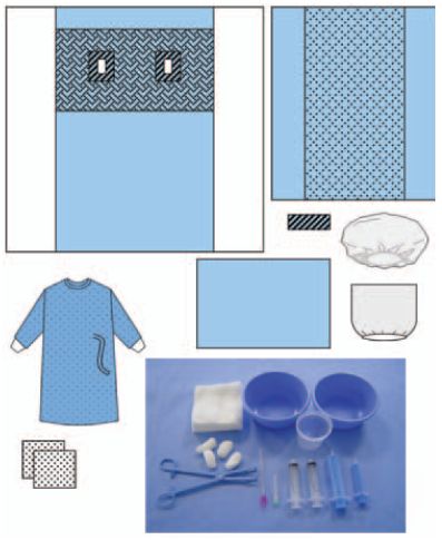 Chirurgiczne obłożenia barierowe Alpha-Tex występują tylko w wersji wyjałowionej. Elementy i całe zestawy są pakowane w opakowania typu Tyvec-folia zgodne z wymogami normy EN ISO 11607:2006. Wyroby Alpha-Tex są sterylizowane radiacyjne w zwalidowanym procesie sterylizacji zgodnym z wymogami normy EN ISO 11137-1:2006. Zestaw składa się z: 1 x serweta na stolik 100 x 150 cm, 1 x serweta 2-warstwowa 90 x 120 cm, 1 x dwustronna serweta do angiografi i udowej 220 x 300 cm z dwoma samoprzylepnymi otworami 6 x 8 cm, 1 x fartuch chirurgiczny rozmiar XL, 4 x taśma przylepna 12 x 25 cm, 1 x osłona foliowa 65 x 85 cm, 1 x Osłona na aparat RTG 70 x 80 cm płaska, 2 x miska plastikowa 500 ml, 1 x kubek plastikowy 125 ml, 1 x strzykawka 5 ml, 1 x strzykawka 20 ml, 2 x strzykawka 10 ml Luer Lock, 1 x igła 0,8 x 40 mm, 1 x igła punkcyjna COOK 18 G, 1 x kleszczyki opatrunkowe, 4 x tupfery 20 x 20 cm+20 x kom. gaz. 10 x 10 + 2 x ręcznik do rąki.
