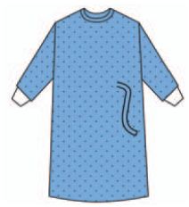 Fartuch chirurgiczny sterylny "S" • wykonany z włókniny trójwarstwowej wysokobarierowej typu SMS 45 g/m2 • rękawy z bawełnianym mankietem • tylne poły fartucha zakładane i wiązane na troki łączone kartonikiem • do każdego fartucha dołączone są dwa papierowe ręczniki 40 x 40 • każdy fartuch owinięty jest w rękaw SBPP (spunbond pp) 40 g/m2
