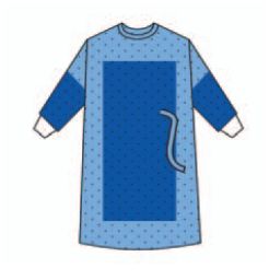 Fartuch chirurgiczny sterylny "S Plus" • wykonany z włókniny trójwarstwowej wysokobarierowej typu SMS 45 g/m2 • wzmocniony nieprzemakalnymi wstawkami w przedniej części i rękawach, które chronią chirurga przed przenikaniem płynów • rękawy z bawełnianym mankietem • tylne poły fartucha zakładane i wiązane na troki łączone kartonikiem • do każdego fartucha dołączone są dwa papierowe ręczniki 40 x 40 • każdy fartuch owinięty jest w rękaw SBPP (spunbond pp) 40 g/m2