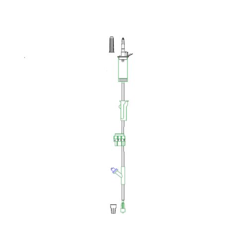Zestaw infuzyjny z precyzyjnym regulatorem przepływu do przetaczania płynów i leków wymagających precyzyjnej podaży.