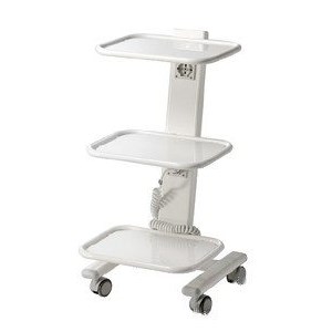 - Stolik posiada 3 półki z wyprofilowanymi brzegami zapobiegającymi wypadaniu umieszczonych na nich urządzeń/narzędzi oraz 2 uniwersalne gniazda zasilania z uziemieniem ergonomicznie umieszczone na kolumnie.