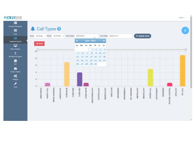 Administrator szpitala może filtrować i przeglądać rejestr połączeń zawierający wszystkie potrzebne dane, takie jak rodzaj połączenia, godzina jego wykonania, odpowiedź pielęgniarki oraz czas, który upłynął od wezwania pielęgniarki do jej pojawienia się. Dzięki systemowi opartemu na technologii RFID oraz kartom z identyfikacją BLE można łatwo sprawdzić, które pielęgniarki odpowiadają na najwięcej wezwań i jak spędzają czas. Wszystkie dane wyświetlają się w postaci łatwych do odczytania graficznych raportów, co pomaga szpitalom w zarządzaniu posiadanymi zasobami.