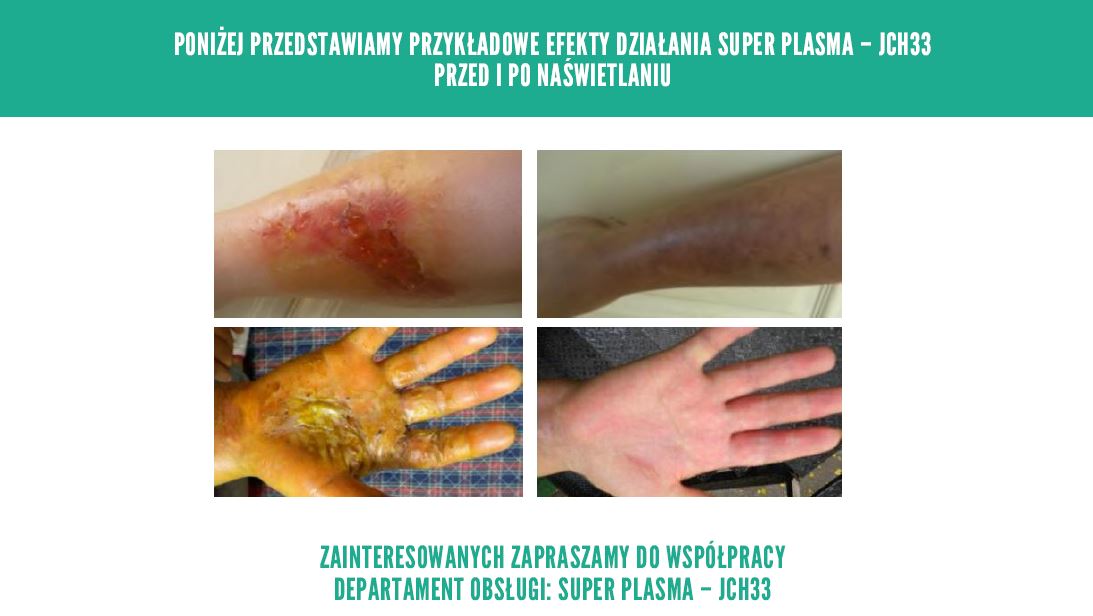 Super Plasma - JCH33 jest jedyną na świecie maszyną w technologii Super Plazmy z wykorzystaniem elektrod zawierających kilkadziesiąt najważniejszych pierwiastków, które podczas naświetlania przyspieszają proces leczenia.