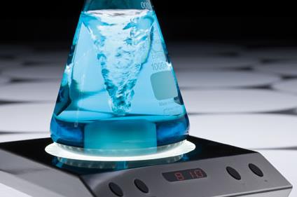 - Ultra płaskie, bezawaryjne mieszadło magnetyczne z jedna dużą pozycją mieszania i luminescencyjną płytą, do 3.000 ml objętości mieszanej, także do lepkich mediów.