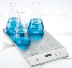 Ekonomiczne mieszadło magnetyczne; piętnastomiejscowe; możliwość mieszania w różnych rodzajach naczyń, maksymalnie 15 zlewek po 250ml każda.