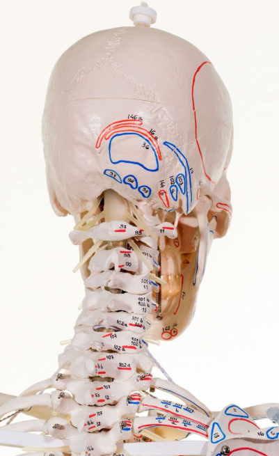 Szkielet człowieka MAX naturalnych wymiarów przedstawia wszystkie anatomiczne detale: szczeliny, otwory, wyrostki. Model z elastycznym kręgosłupem, ale także więzadłami i przyczepami mięśniowymi.