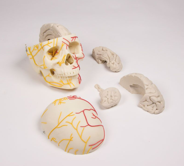 Czaszka z mózgiem naturalnej wielkości, bardzo szczegółowy. Wysoka jakość wykonania, bardzo wytrzymały. Czaszka z mózgiem to 3 częściowa replika z nerwami i naczyniami. Model mózgu składa się z 8 części, wykonany z miękkiego materiału.