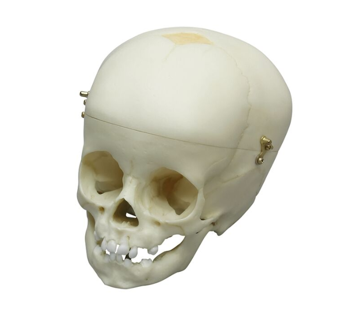 Czaszka rocznego dziecka wykonana z bardzo wytrzymałego tworzywa sztucznego. Dzięki zastosowaniu specjalnej technologii model bardzo przypomina prawdziwą czaszkę.