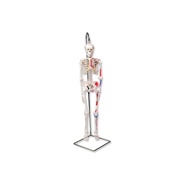 Mini szkielet Shorty podwieszony na statywie Dzięki nowoczesnym osiągnięciom techniki możliwe było realistyczne oddanie kości z zachowaniem anatomicznych szczegółów i struktur oraz minaturyzacja do połowy rozmiarów naturalnych. Czaszka może być zdemontowana i rozłożona na 3 części a ręce i nogi są demontowalne. Stawy biodrowe zostały zamontowane w sposób umożliwiający demonstrację ich naturalnego ruchu.