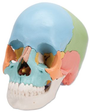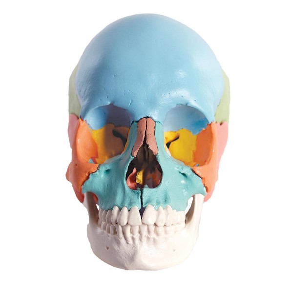 Model czaszki dorosłego człowieka składa się z 22 niezależnych części w 9 różnych kolorach, dzięki czemu bez problemów można je odróżnić. Każda para płytek kostnych ma ten sam kolor. Model dodatkowo wyposażony został w stabilne łączniki umożliwiające szybkie złożenie całej czaszki. Model składa się z następujących 22 części: