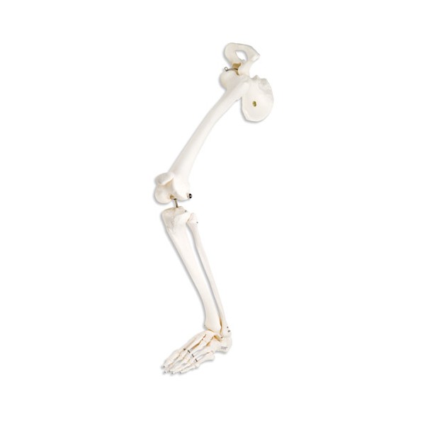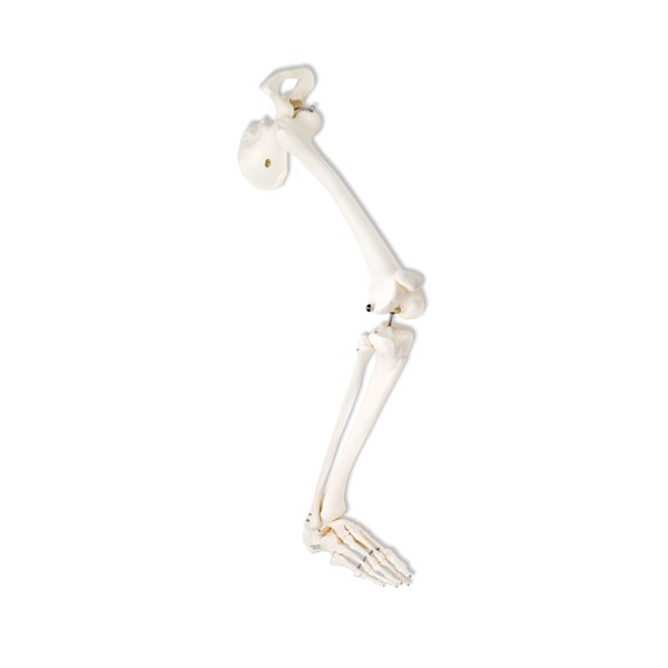Szkielet nogi z kością miedniczną prezentuje kości szkieletu, które połączone są drutem dzięki czemu są nieznacznie elastyczne w okolicach palców i kostki. Ponadto szkielet posiada elastyczny staw kolanowy.