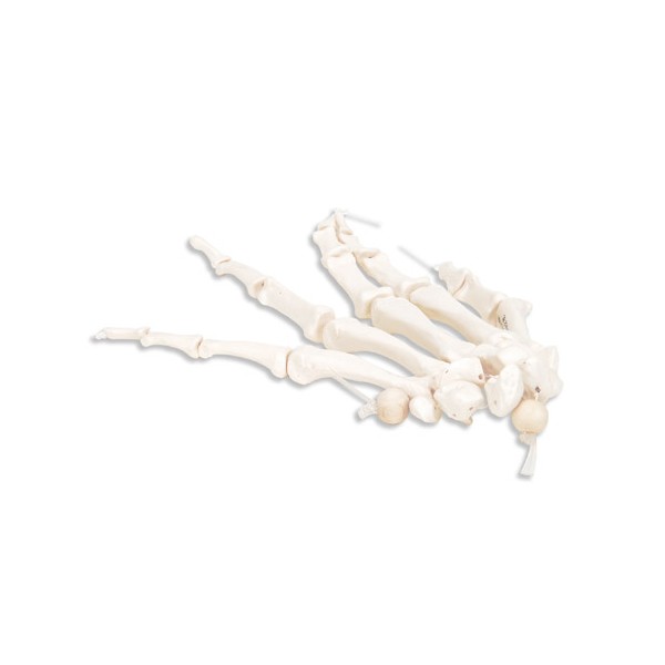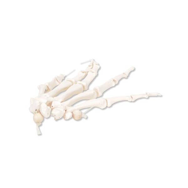 Elastyczny szkielet dłoni prezentuje kości połączone elastyczną żyłką dzięki czemu szkielet jest bardzo elastyczny.