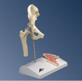 Model stawu biodrowego został zmniejszony do połowy wymiarów naturalnych, jednakże zachował wszystkie cechy większego modelu. Posiada on wszystkie zewnętrzne cechy anatomiczne budowy kostnej, oraz dodatkowo na podstawie znajduje się model stawu biodrowego w przekroju.