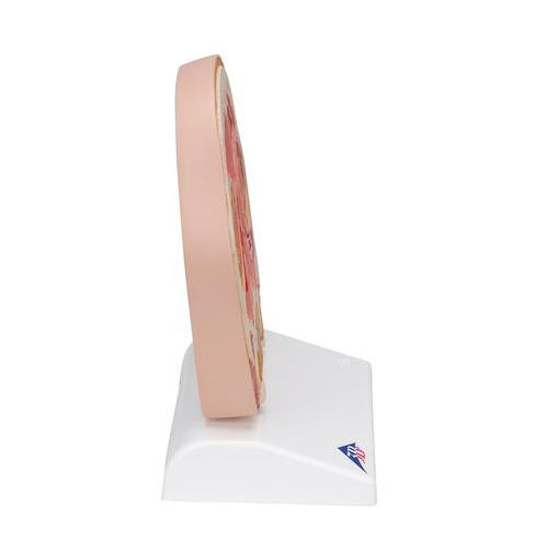 Model głowy z szyją to jedna z najlepiej ocenianych replik naturalnej wielkości, przedstawiająca lewą połowę z mięśniami, nerwami, a także strukturami kostnymi i połową mózgu. Z kolei głowa i szyja podzielony w przekroju środkowy i oznaczony kolorami. Skóra oraz mięśnie twarzy na prawej części twarzowej modelu są usunięte, w celu przedstawienia głębszych struktur. Głowa z szyja umożliwia wyciągnięcie w celu lepszego poznania gałki ocznej, kości pokrywającej zatokę szczękową oraz prawa połowa języka.