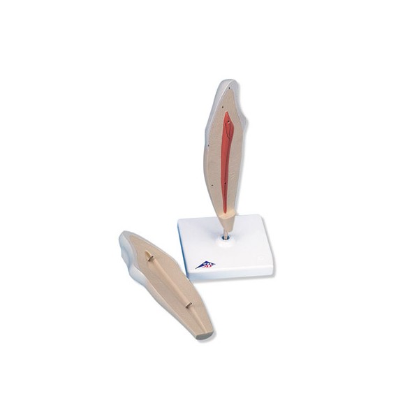 Dwuczęściowy dolny kieł w przekroju podłużnym.