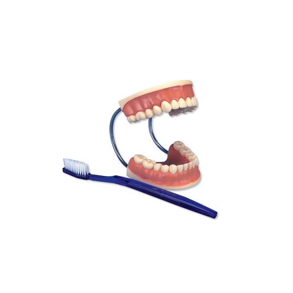 Model do nauki pielęgnacji uzębienia przedstawia elastycznie połączone szczęki górna i dolną. Dzięki dołączonej, dużej szczoteczce demonstracja w klasie będzie doskonale widoczna dla wszystkich uczniów. Replika umożliwia naukę odpowiednich technik opieki stomatologicznej.