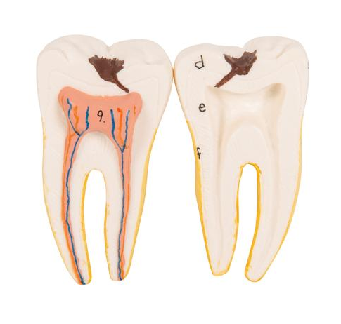 Połowa dolnej szczęki to dentystyczny model w 3-krotnym powiększeniu. Składa się z aż 6 części, na statywie. Ciekawy model dentystyczny połowy dolnej szczęki. Replika przedstawia szczękę młodej osoby. Zdemontować można część kości, dzięki czemu będzie wgląd w zęby z korzeniami, nerwami i naczyniami. Ząb trzonowy oraz kieł można usunąć. Ząb ten jest podzielony na dwie części.