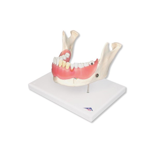Model chorób zębów podzielony jest na dwie części. Jedna połowa przedstawia szczękę z ośmioma zdrowymi zębami oraz dziąsłami. Na drugiej połowie można znaleźć następujące choroby: