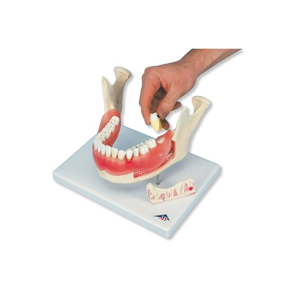 Pierwszorzędna pomoc dydaktyczna. Model prezentuje całą dolną szczękę dorosłej osoby w dwukrotnym powiększeniu. Aż 16 zębów można zdemontować z modelu.