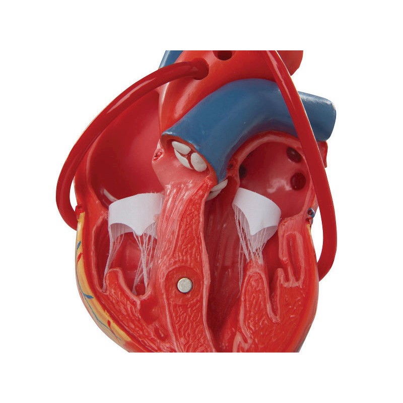 G05 to 2-częściowy model serca z bajpasami. Przednia ściana modelu jest odłączana, co uwidacznia komory i zastawki. Model prezentuje wszystkie szczegóły budowy anatomicznej i jest nieco mniejszy od naturalnych rozmiarów. W modelu kolorem zaznaczono bajpasy do prawej tętnicy wieńcowej, do gałęzi międzykomorowej przedniej, a także do gałęzi okalającej prawej.