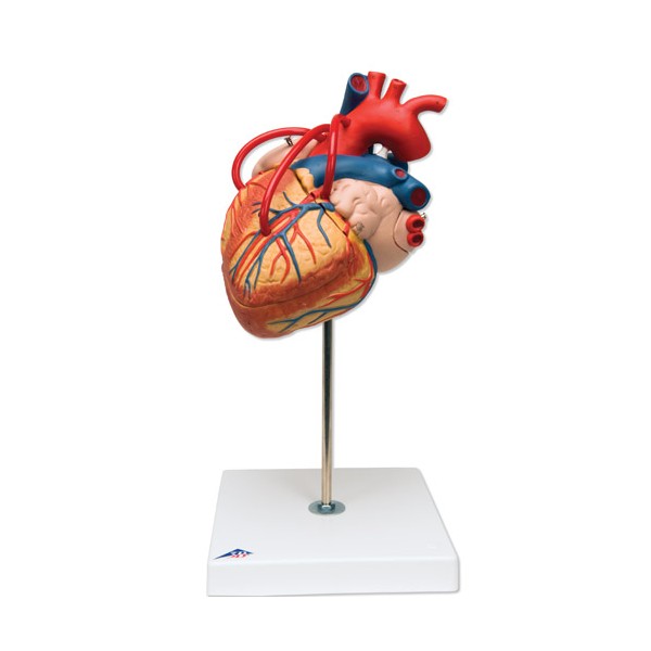 Model serca składający się z 4-części jest dwa razy większy od serca naturalnej wielkości. Przód modelu może być usunięty w celu lepszej prezentacji wewnętrznych komór serca.