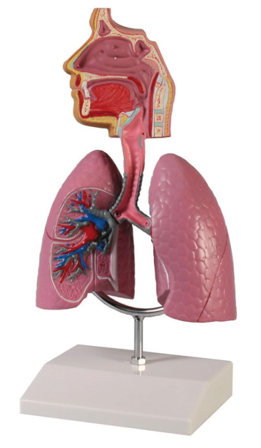 Układ oddechowy przedstawia płuca, tchawicę oraz górne drogi oddechowe. Model umieszczony jest na podstawie z której łatwo go zdemontować.