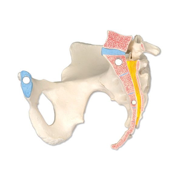 Miednica żeńska H20/1to niezwykle szczegółowy model anatomiczny wykonany z wytrzymałego tworzywa sztucznego. Miednicę można rozmontować w połowie, aby odsłonić część ogona końskiego w kanale kręgowym. Lewa połowa piątego kręgu lędźwiowego jest usuwalna.
