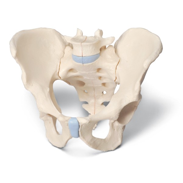 Miednica Męska (3 części) przedstawia wszystkie anatomiczne detale i struktury takie jak: kości miednicze, dwie kości biodrowe, spojenie łonowe, kość krzyżową, kość guziczną, kość ogonową, piąty krąg lędźwiowy z dyskiem międzykręgowym. Miednicę można rozmontować w połowie (połowy są złączone magnesami), aby odsłonić część ogona końskiego w kanale kręgowym. Lewa połowa piątego kręgu lędźwiowego jest zamocowana na magnesach i jest zdejmowana.