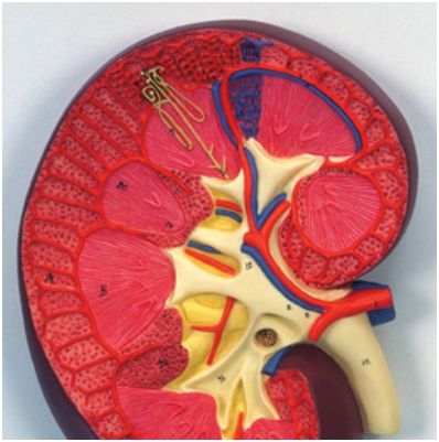 W prezentowanym modelu nerka została trzykrotnie powiększona. Dostarczany z podręcznikiem użytkownika.