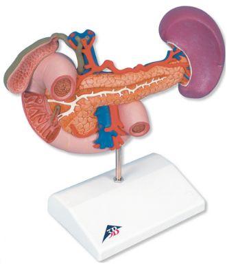 Tylne Organy Górnego Brzucha o wymiarach naturalnych przedstawia: dwunastnicę (częściowo otwartą), pęcherzyk żółciowy (otwarty), drogi żółciowe (otwarte), trzustkę , śledzionę oraz otaczające naczynia.