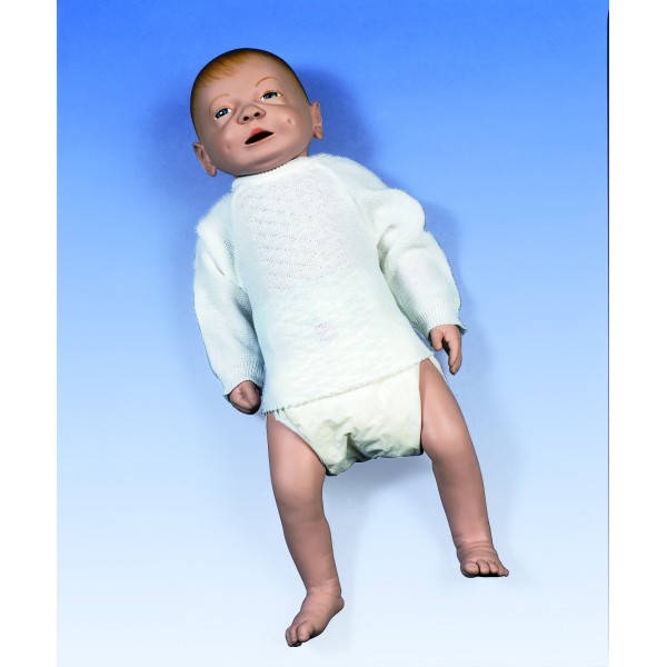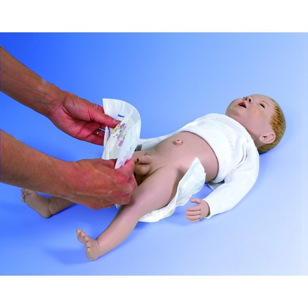 Naturalnej wielkości męski model noworodka do zabiegów pielęgnacyjnych. Doskonale nadaje się do ćwiczeń związanych z opieką nad niemowlęciem.