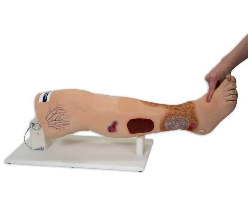 Model niewydolności żylnej to doskonałą pomoc podczas nauki i ćwiczeń zasad opieki nad pacjentem z niewydolnością żylną. Ponadto istnieje możliwość zamówienia podstawy umożliwiającej obracanie nogą.