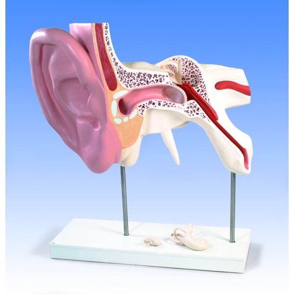 3-częściowy, aż 15-krotnie powiększony, największy na świecie model ucha. Zamontowany na podstawie.