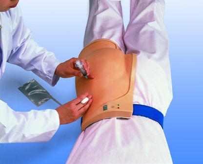 Symulator pośladkowy mocuje się na manekinie lub pacjencie za pomocą rzepów, umożliwia ćwiczenie wstrzyknięć domięśniowych. Poprzez sygnalizację świetlną i dźwiękową stwierdza prawidłowość wstrzyknięć. Struktura skóry bardzo trwała, nawet po wielu wkłuciach nie ma śladu zużycia. Wstrzyknięte płyny, odprowadzane są na zewnątrz.