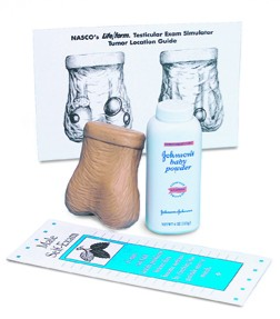 Badanie jąder to model posiadający kilka wyczuwalnych guzków w jadrze, gdzie skóra jest miękka i cienka. Model posiada 4 wyczuwalne guzki w jądrze, z delikatną strukturą wewnętrzną. Dodatkowo zestaw zawiera pudełko ochronne i puder.