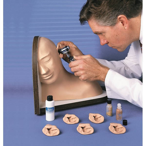 Symulator do badania ucha składa się on z modelu głowy z 6 wymiennymi, elastycznymi uszami o naturalnej budowie wewnętrznej i zewnętrznej. Modele uszu oznaczone są różnymi kolorami i umożliwiają rozpoznanie różnych patologii. Wyjątkiem jest jeden model ucha nieoznaczony kolorem, służy ona do ćwiczenia usuwania woskowiny.